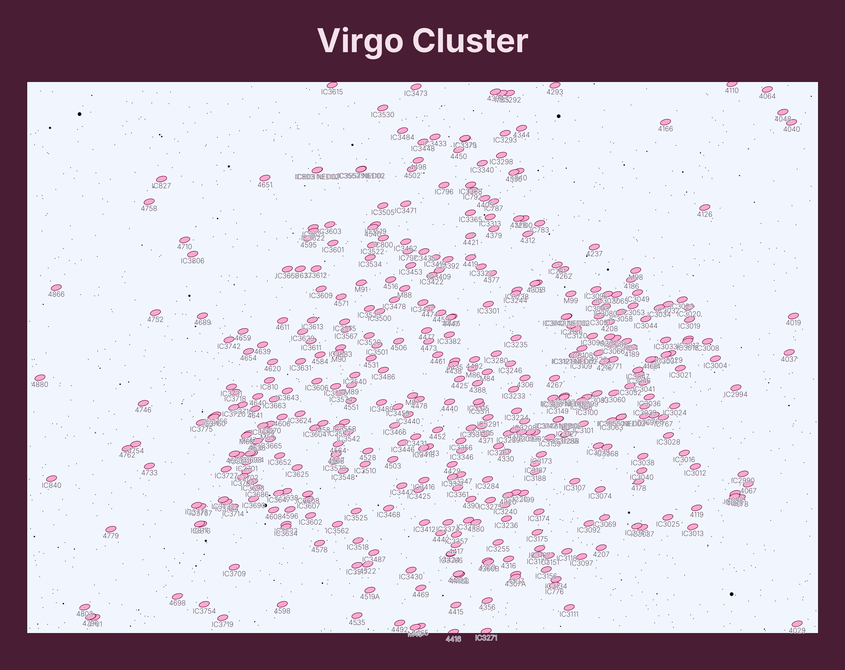 p.title("Virgo Cluster", style__font_color="hsl(330, 44%, 92%)")